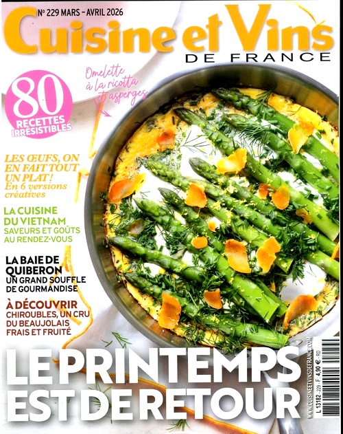 Tidningen ger dig traditionella och kreativa recept, som passar för alla tillfällen och smaker. Du får också lära dig av de stora kockarna och vinexperterna, som ger dig tips om de bästa mat- och vinkombinationerna. Tidningen tar dig på resa genom Frankrikes och världens regioner, där du upptäcker produkter, terroirer och matkulturer. Cuisine & Vins De Fr. (FR) är en tidning för att njuta och dela din passion för mat och vin.
