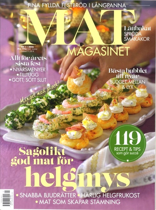 https://www.tidningskungen.se/mat-och-vin/matmagasinet317Matmagasinet//bilder.tidningskungen.se/upl/thumb380x500/matmagasinet-12-2025.jpg79SEKInStockMat & VinMatmagasinet är en tidning för dig som älskar att stå i köket! Tidningen kan locka fram mat- och livsglädje i vem som helst och du lär dig snabbt hur du imponerar på vänner och familj med fantastisk och spännande matlagning. Med över 100 recept i varje fullspäckad utgåva får du alla verktyg att lyckas, oavsett om det är till vardags eller till fest!