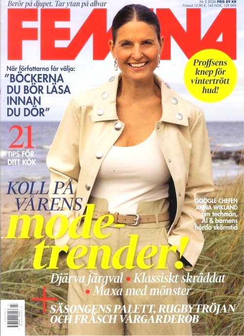 Femina – Sverige största magasin för kvinnor! En Femina prenumeration eller lösnummer ger dig en unik och inspirerande mix av alla möjliga ämnen som vacker och stilsäkert mode, aktuella händelser samt fenomen inom kulturvärlden, berörande och angelägna reportage. Dessutom får du intervjuer med intressanta personer - kända som okända.