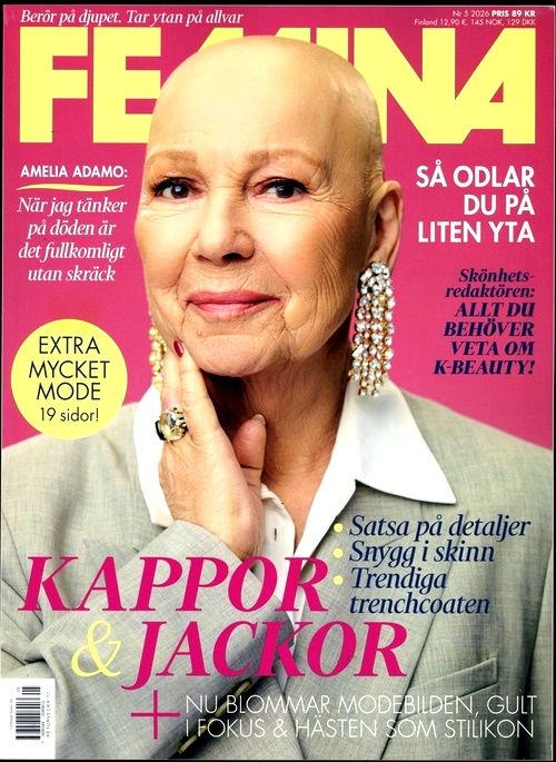 Femina â Sverige största magasin för kvinnor! En Femina prenumeration eller lösnummer ger dig en unik och inspirerande mix av alla möjliga Ă€mnen som vacker och stilsĂ€kert mode, aktuella hĂ€ndelser samt fenomen inom kulturvĂ€rlden, berörande och angelĂ€gna reportage. Dessutom fĂ„r du intervjuer med intressanta personer - kĂ€nda som okĂ€nda.