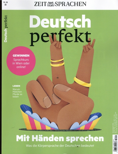 Deutsch Perfekt (DE) är en tysk tidning som hjälper dig att förbättra dina tyska kunskaper på ett enkelt och roligt sätt. Du får läsa intressanta artiklar om livet i tysktalande länder, om vardag, samhälle, kultur och aktuella händelser. Du får också öva på grammatik, ordförråd, uttal och förståelse med olika övningar och ljudfiler. Deutsch Perfekt (DE) är en tidning för dig som vill lära dig tyska eller fräscha upp dina kunskaper.