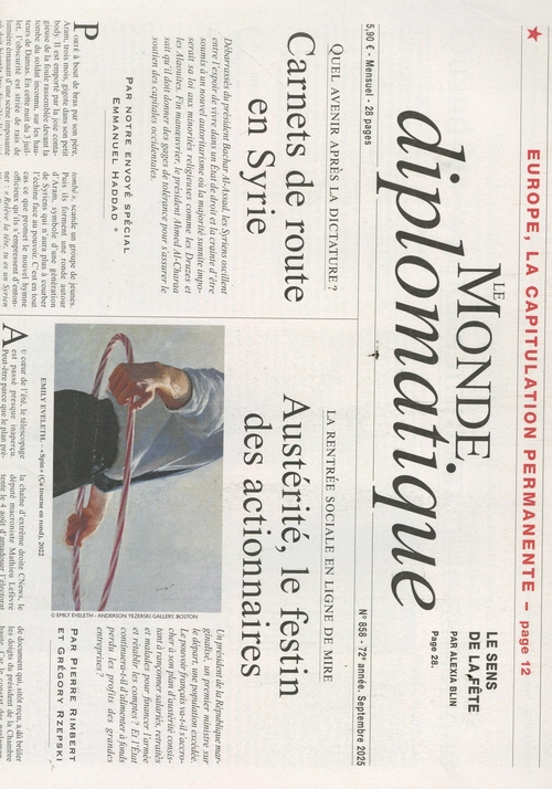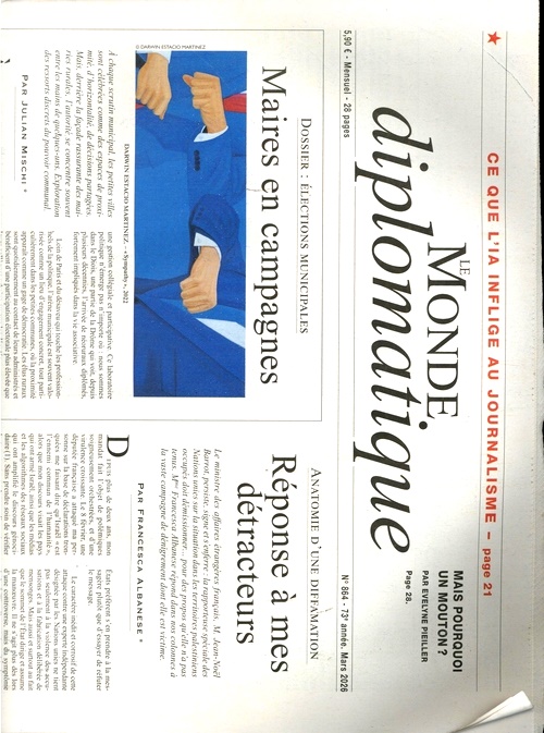 Monde Diplomatique (FR) är en av de mest respekterade och inflytelserika tidningarna om internationell politik och kultur i Frankrike. Den har varit i tryck sedan 1954 och erbjuder varje månad djupgående analyser, reportage, debatter och kritik om världens stora frågor och utmaningar.