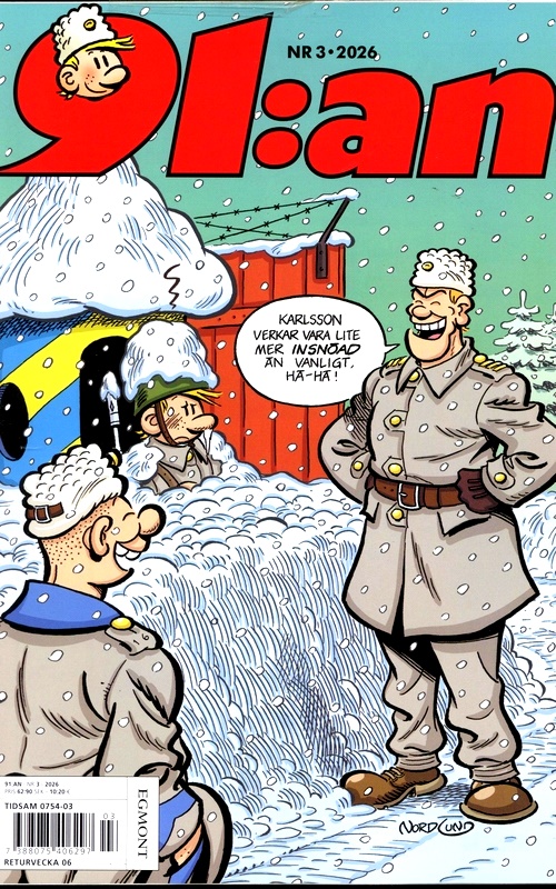 https://www.tidningskungen.se/serier-och-humor/91an-se4891:an//bilder.tidningskungen.se/upl/thumb380x500/91an-23-2025.jpg359SEKInStockSerietidningar91:an är en tidning fylld med varm humor som kittlar både maggrop, smilband och hjärta. Följ den naive och godtrogne 91:an Karlsson, hans älskade Elvira, den självgode egoisten 87:an, övriga rekryter och inte minst de hårt prövade befälen. Vardagslivet på regementet beskrivs både träffande och fyndigt. I 91:an hittar du även andra svenska serier, till exempel Livet hemmavid, Sputnik, Ferguson och inte minst de älskade klassikerna Åsa-Nisse och Kronblom. 91:an bjuder kort sagt på humor för alla åldrar. Tidningen är på svenska.
