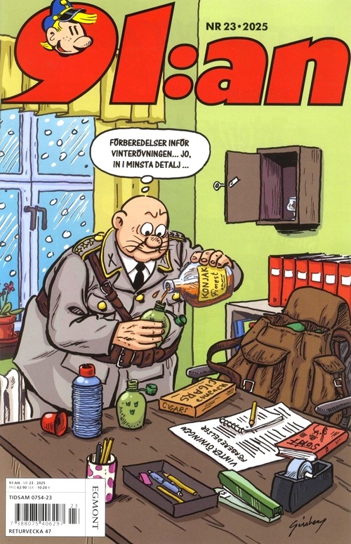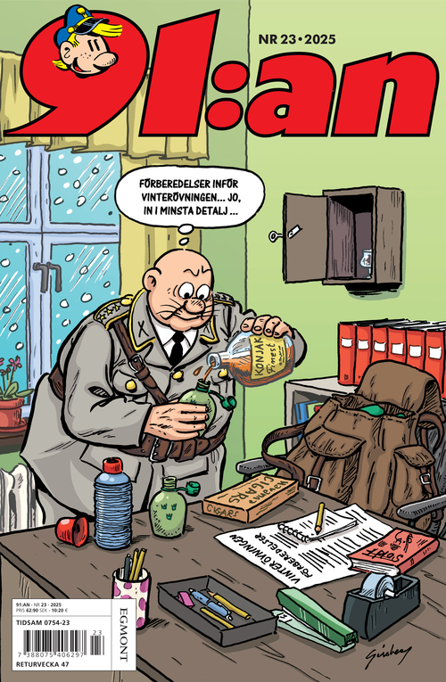https://www.tidningskungen.se/serier-och-humor/91an-se4891:an//bilder.tidningskungen.se/upl/thumb380x500/91an-23-2025.jpg63SEKInStockSerietidningar91:an är en tidning fylld med varm humor som kittlar både maggrop, smilband och hjärta. Följ den naive och godtrogne 91:an Karlsson, hans älskade Elvira, den självgode egoisten 87:an, övriga rekryter och inte minst de hårt prövade befälen. Vardagslivet på regementet beskrivs både träffande och fyndigt. I 91:an hittar du även andra svenska serier, till exempel Livet hemmavid, Sputnik, Ferguson och inte minst de älskade klassikerna Åsa-Nisse och Kronblom. 91:an bjuder kort sagt på humor för alla åldrar. Tidningen är på svenska.