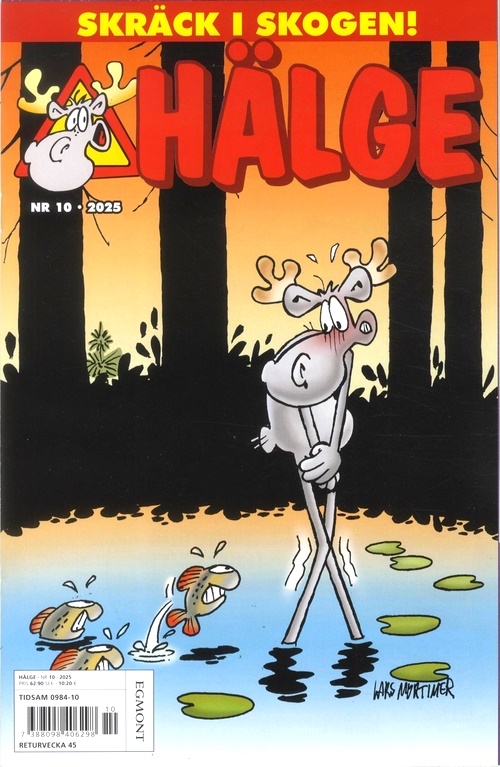 https://www.tidningskungen.se/serier-och-humor/halge56Hälge//bilder.tidningskungen.se/upl/thumb380x500/halge-10-2025.jpg63SEKInStockSerietidningarHälge är en filosofisk och kärlekskrank älg, som med sina sex taggar och ett stort mått list upprätthåller sin status som skogens konung. Han lyckas ständigt gäcka jägaren Edwin, hans hund Blixten och den Rambo-inspirerade jaktpolaren Uffe. Edwins hustru Ellen prövas hårt av makens jaktfascination, men hon hittar också sina sätt att sätta gränser. Förutom gästserier som Pyton, Uffe & Affe, Ottifanterna, Trendz och Djurgården så innehåller tidningen även korsord och roliga vitsar. Tidningen är på svenska.