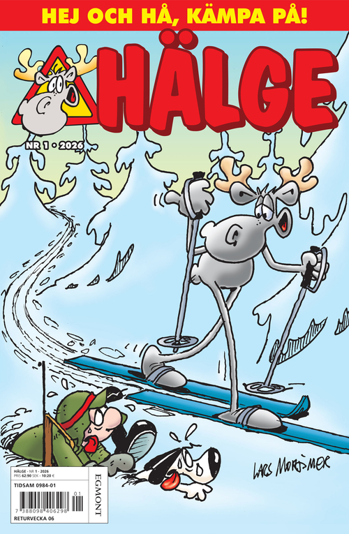 https://www.tidningskungen.se/serier-och-humor/halge56Hälge//bilder.tidningskungen.se/upl/thumb380x500/halge-1-2026.jpg369SEKInStockSerietidningarHälge är en filosofisk och kärlekskrank älg, som med sina sex taggar och ett stort mått list upprätthåller sin status som skogens konung. Han lyckas ständigt gäcka jägaren Edwin, hans hund Blixten och den Rambo-inspirerade jaktpolaren Uffe. Edwins hustru Ellen prövas hårt av makens jaktfascination, men hon hittar också sina sätt att sätta gränser. Förutom gästserier som Pyton, Uffe & Affe, Ottifanterna, Trendz och Djurgården så innehåller tidningen även korsord och roliga vitsar. Tidningen är på svenska.