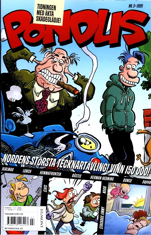 Fotboll, öl och panikragg är Pondus signum. Möt vardagshjälten, pappan och pubägaren Pondus, den evige losern Jocke, misslyckade serietecknare, gråtmilda hårdrockare, en sexfixerad tysk och en hel hög andra galningar. Lägg till detta en blandning av grovkornig, men träffsäker humor från gräddan bland Nordens tecknare som Hans Lindström, Niklas Eriksson, Nils Axle Kanten och Tor Liers Kollektivet, plus seriöst insnöade men hejdlöst roliga serien M och de danska galningarna WUMO och du har en garanterat livskvalitetsförhöjande serietidning för (nästan) vuxna. Soundtracket består givetvis av riktiga gitarrsolon, den enda sporten heter fotboll och drycken är öl. Tidningen är på svenska (typ). Och rolig!
