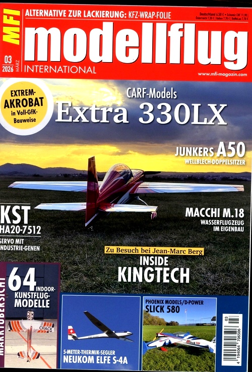 Mfi Modellflug Int. (DE) är tidningen för dig som är intresserad av modellflyg, teknik, innovation och hobby. Deras innehåll är aktuellt, smart, roligt och relevant för deras läsare, som vill hålla sig uppdaterade om de senaste och bästa modellerna, utrustningen, evenemangen och nyheterna inom modellflygvärlden.
