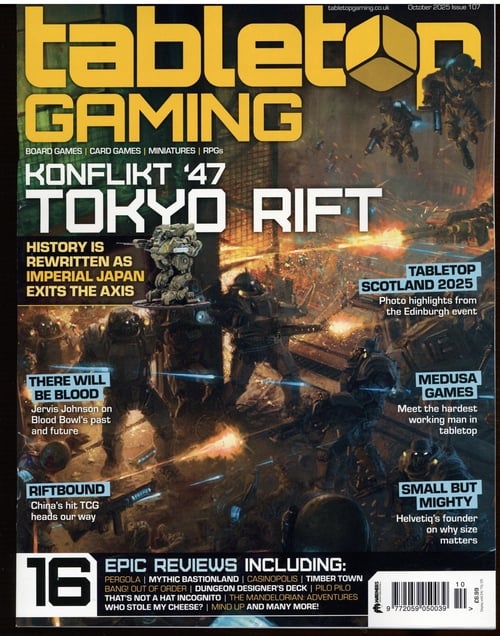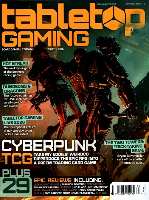 Tabletop Gaming är världens ledande magasin för alla typer av analoga spel, från brädspel och rollspel till figurspel och krigsspel, med allt däremellan. Oavsett om du är en D&D-fantast, Magic-nybörjare, Eurogame-entusiast, Warhammer-nörd, Pandemic-fanatiker, X-Wing-expert eller Exploding Kittens-besatt, har tidningen precis vad du letar efter.