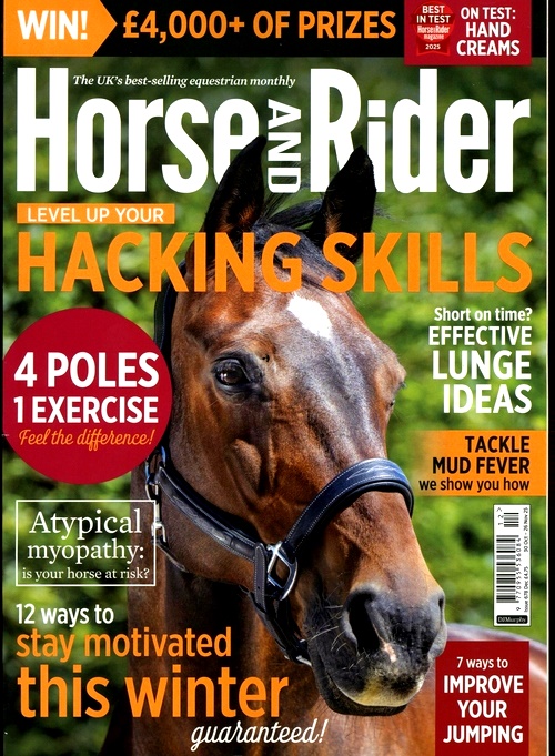 Horse And Rider Magazine (UK) är en tidning för dig som vill läsa om allt som rör hästar och ridning. Tidningen ger dig information och underhållning om hästar och ridning, och som visar upp de bästa och mest aktuella artiklarna och reportagen.