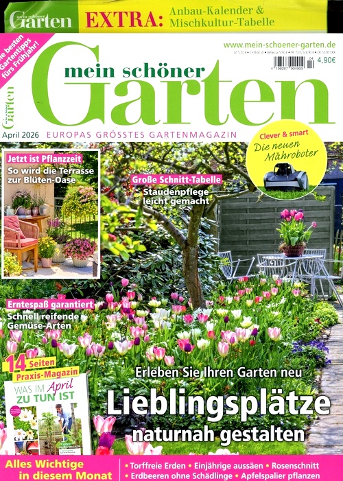 Mein Schöner Garten (DE) är en tysk tidning som ger dig praktiska och inspirerande tips för din trädgård. Du får lära dig om olika växter, hur du sköter dem, hur du planerar och anlägger din trädgård och hur du löser vanliga problem. Du får också se vackra trädgårdar från hela världen, läsa om aktuella trender och nyheter och delta i tävlingar och erbjudanden. Mein Schöner Garten (DE) är en tidning för dig som älskar att odla och njuta av din trädgård.