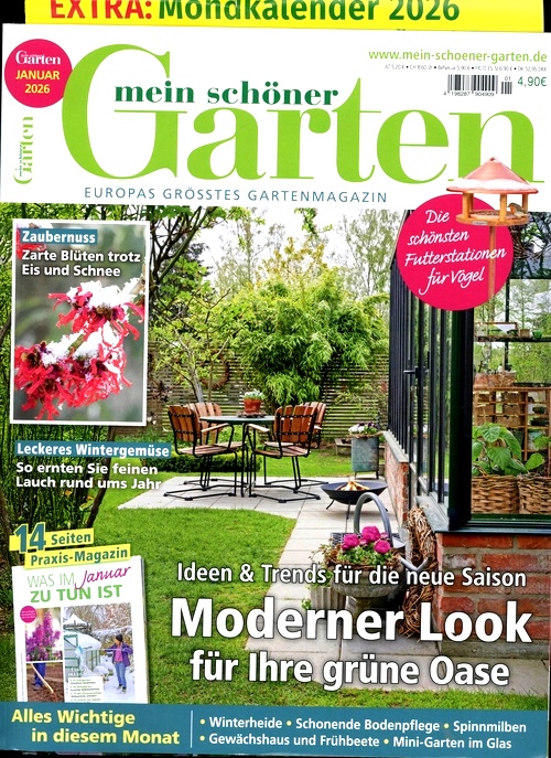 Mein Schöner Garten (DE) är en tysk tidning som ger dig praktiska och inspirerande tips för din trädgård. Du får lära dig om olika växter, hur du sköter dem, hur du planerar och anlägger din trädgård och hur du löser vanliga problem. Du får också se vackra trädgårdar från hela världen, läsa om aktuella trender och nyheter och delta i tävlingar och erbjudanden. Mein Schöner Garten (DE) är en tidning för dig som älskar att odla och njuta av din trädgård.