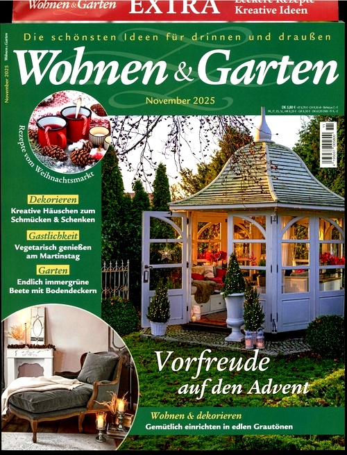 Wohnen Und Garten (DE) är en av de mest inspirerande och kreativa hem- och trädgårdstidningarna i Tyskland. Den har varit i tryck sedan 1998 och visar upp de vackraste idéerna för inomhus och utomhus.