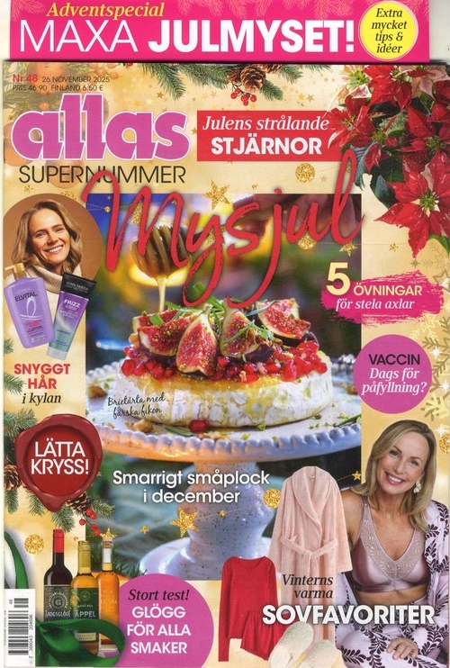 Som prenumerant på tidningen Allas får du läsa om engagerande och spännande reportage, klura på Allas korsord och njuta av en lugn stund med din favorittidning. Beställ en prenumeration till kampanjpris idag!470 nr0allas-46-2025.jpg2025-11-13