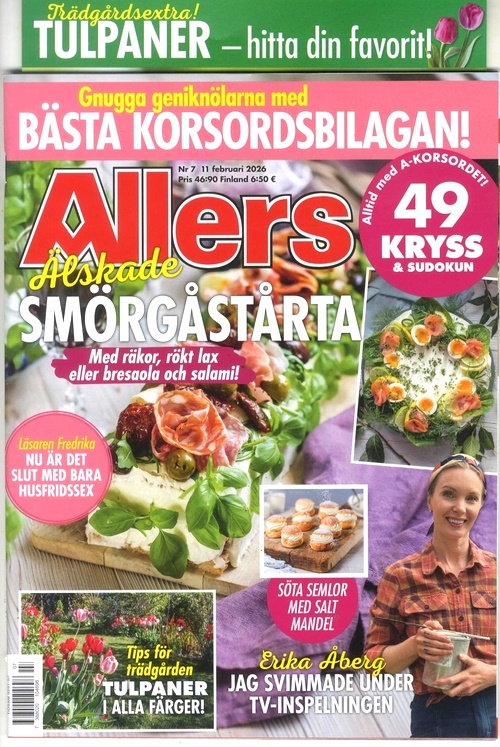 Allers är en bra tidning då den har en sån bredd, intressanta reportage, matrecept, novell-läsning, pyssel, korsord. Mycket trevligt och roande. Tack!