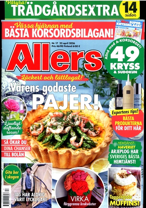 Har gillat allers. Men på senare tid så består tidningen mest av reklam,utdrag av flera noveller, allersresor (samma i varje tidning) och onödigt många recept. Och på grund av det kommer jag tyvärr att avsluta prenumerationen.