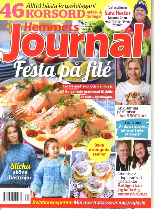 Hemmets Journal är Sveriges ledande veckotidning och har i snart 100 år varit det självklara valet för den som vill ha underhållande läsning i alla tänkbara områden. Köp en prenumeration eller ett lösnummer till dig själv eller ge bort en i present. Här hittar du svårslagna priser.